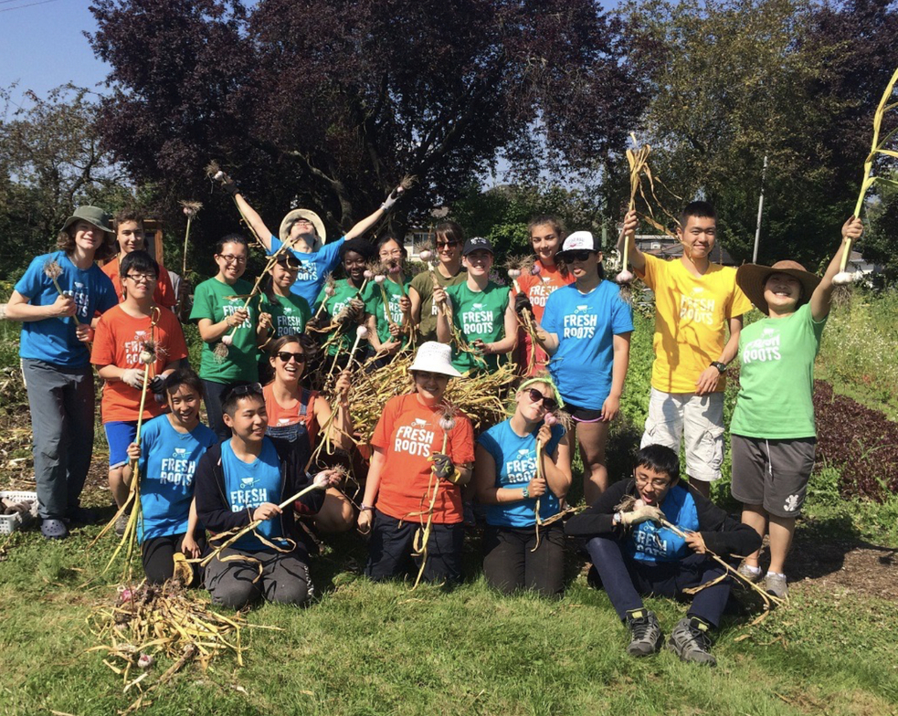 ABOVE: Youth celebrate their harvest of garlic, which they will sell at a local farmers’ market. They’re becoming more food-literate, learning about stewardship, and boosting local food security in programs from the Vancouver-based non-profit Fresh Roots. Photo courtesy of Freshroots.ca